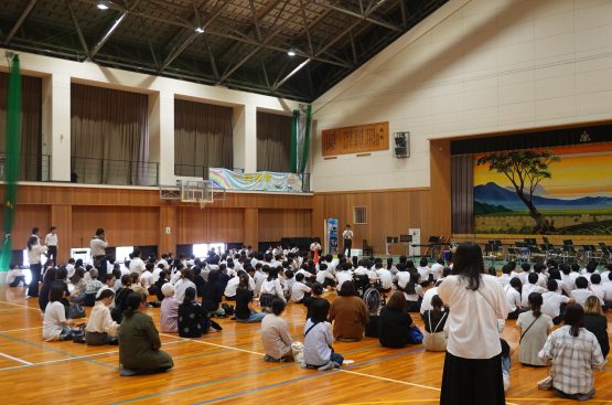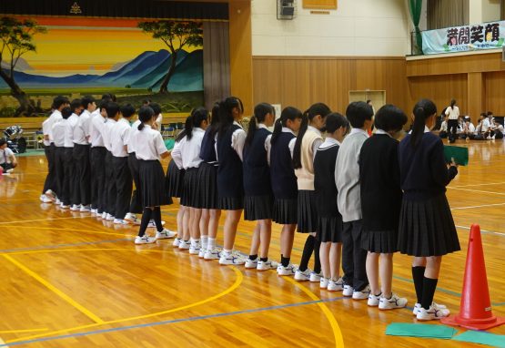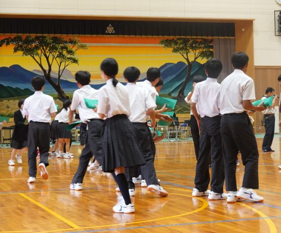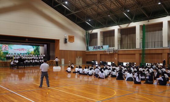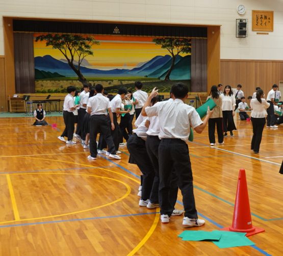 本日、今年度より新たに始まった学校行事「アオハル祭」「合唱発表会」が開催されました。生徒会が中心となって企画・運営を行い、多くの生徒が準備に尽力してくれたことで、思い出に残る素晴らしい一日となりました。5時間目は全校生徒参加のレクリエーション(ボール運びリレー)、吹奏楽部による演奏、そして「K-1グランプリ」として有志によるステージ発表が行われ、会場は笑顔と拍手に包まれました。出演してくれた生徒の皆さん、個性あふれるパフォーマンスをありがとうございました。
