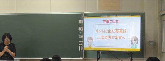 本日、2・3年生を対象に「性被害・暴力防止教室」を実施しました。外部講師の先生をお招きし、「バウンダリー(境界線)」や「デートDV」、そして「SNSを通じた性被害」について、わかりやすく丁寧にお話しいただきました。生徒たちは、日常生活の中にも潜むリスクや、自分や周囲の人を守るための知識と対応力について学ぶことができました。性被害や暴力は、自分も含めた身近に起こり得る問題であり、「被害者」「加害者」の立場になる可能性があることを、決して他人事ではなく、自分ごととして考える大切さを実感する時間となりました。