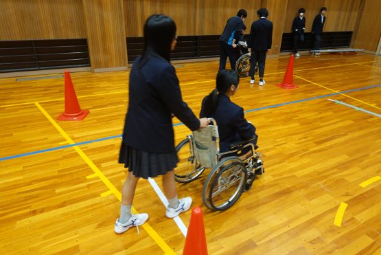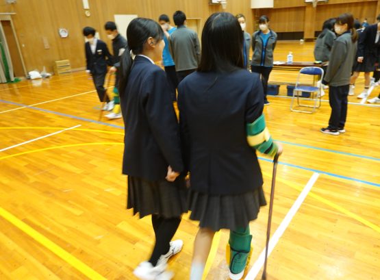 本日、2年生が地域の福祉体験学習を行いました。今回の体験は、普段から介護のお仕事に携わっておられる「青祥会」のボランティアガイド12名の皆様にご協力いただきました。
