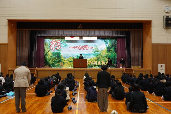 新しい年を迎え、3学期の始業式を行い、各学年の代表が新年の抱負を述べました。
