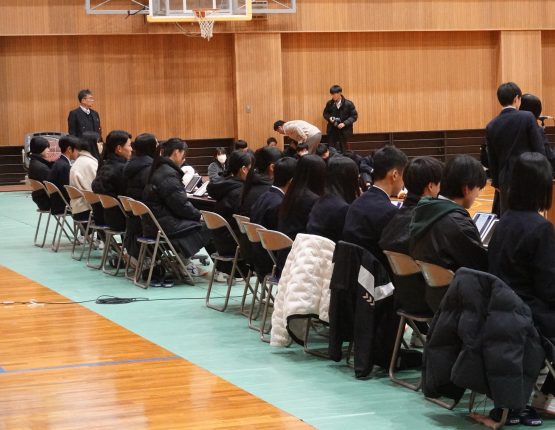 本日、生徒総会を行い、新生徒会本部および各専門委員会から、今年度の活動方針について説明および質疑応答が行われました。