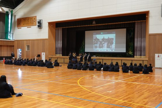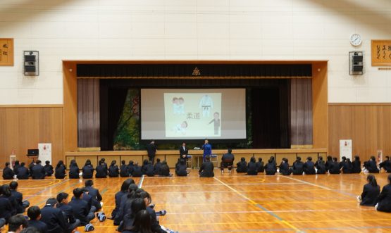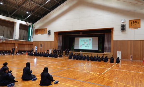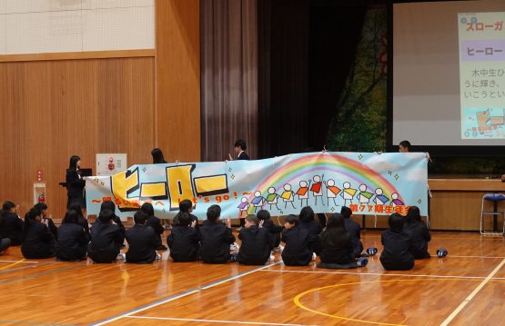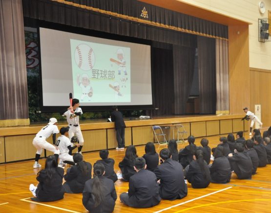 また、各部活動の紹介では、工夫を凝らした発表を通して、それぞれの部の魅力がいきいきと伝わってきました。全校レクリエーションでは、新しく来られた先生方に関するクイズやボール運びリレーが行われ、会場には笑い声と笑顔が広がり、和やかなひとときとなりました。閉会では、新入生代表が感謝の言葉を述べ、在校生の温かな思いがしっかりと新入生に届いた歓迎会となりました。木之本中学校らしい「つながり」と「あたたかさ」を感じる、心に残る時間となりました。