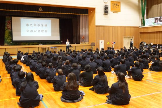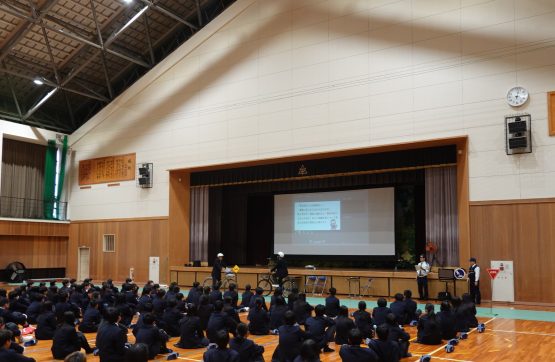 本日、交通安全教室およびSNSに関する講話を実施しました。講師として木之本警察署の方をお招きし、自転車に関する新たな罰則規定について、具体的にご指導いただきました。